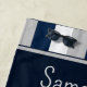 This personalized anchor design is hand drawn with line art on a navy blue background. The top and bottom borders are decorated with gray, navy blue, and white stripes. For that extra special touch, personalize this design with your own name. Perfect for a beach house or any nautical enthusiast!