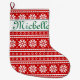 Personalized nordic snowflake Christmas stocking with custom name monogram. Funny ugly xmas sweater pattern with customixable color. Cute monogrammed xmas decorations for the Holidays. Change the quantity to get the cheapest price per sock. Elegant script typography initial letter. Suitable for men, women and kids. Red green and white x-mas stockings.