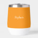 Personalized orange script wine tumbler. Modern, elegant, trendy wine tumbler.