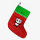 Perfect! Exactly what I ordered! I uploaded a picture of my blue chow, and the screen print was incredible. the back side of the stocking was the red and black checkered print. my puppy's name was also printed on the cuff of the stocking. PERFECT! Highly recommend this product! My puppy's name was screen printed onto the cuff of the stocking, the font was perfect!
