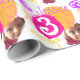Modern text and paint dabbed splats personalized age and name birthday girls custom photo gift wrapping paper, featuring your own child's photo and name in pink, purple, white, orange and yellow. Personalize with your own short name (please note not all names will fit due to the nature of the font) and single digit kids age, currently reads Jessica 3, other name lengths are available, if you need help fitting your name please contact me. A great way to give a personalized touch to art party birthday gifts. Uniquely designed by Sarah Trett.
