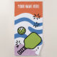 Personalized Name Pickleball Beach Towel. This pickleball beach towel bursts with energy, featuring a bold green paddle with a purple handle and a matching green pickleball set against a dynamic background of wavy blue lines, orange gradients, and playful black starbursts. The stylized design captures the spirit of motion and fun, making it perfect for any pickleball club, team, or tournament. Whether you're gifting it for a birthday, packing it for a vacation, or showing off at a tourist resort, this towel brings vibrant style to the court and beyond. Ideal for fans, players, and coaches who love bold graphics and sporty flair. Pickleball beach towel is a standout accessory for any enthusiast. Pickleball design can be transferred to other similar pickleball gifts and products.