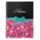 Personalized name pink lacrosse turquoise bow notebook