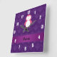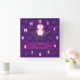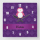 Personalized name pink penguin purple damask square wall clock