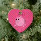 Personalized name pink pig hearts ceramic ornament