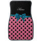 Personalized name pink polka dots turquoise bow car floor mat