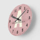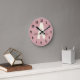 Personalized Name Pink Rosegold Sparkle Glitter Round Clock Template. A modern and feminine design perfect as custom gift for her. Bridesmaid, Girlfriend, Daugther, Friends, Co-workers and Employees will be happy to receive this trendy gift!
