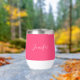 Personalized pink script wine tumbler. Modern, elegant, trendy wine tumbler.