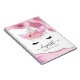 Personalized unicorn notebook featuring pink and gold glitter agate crystal edges, a cute unicorn face with girly florals, the childs name in a elegant calligraphy font, and a personalized saying that can be deleted.