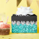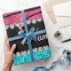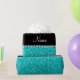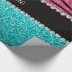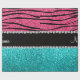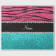 Pink zebra stripes animal print pattern background and bright aqua / turquoise glitter (not real glitter) black diamonds stripe (faux diamonds, not real) with hearts and dots personalized with your name gifts or monogram gifts or your initials. Ideal for bride and groom weddings, wedding showers, engagement showers, engagement party, anniversary, save the date, bachelorette party, birthdays, and much more featuring an elegant and traditional fancy lettering