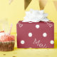 Personalized curved text name with white polka dot pattern print background in pretty wine red color. Great birthday gift wrap for women, girls or any lady!