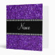 Personalized name purple glitter 3 ring binder