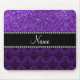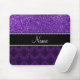 Personalized name purple glitter damask mouse pad