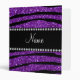Personalized name purple glitter zebra stripes binder