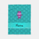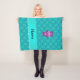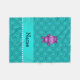 Create your own custom Personalized with a name,monogram, or initials or saying cute cartoon purple hippo animal with a retro half circles turquoise background and turquoise stripe. Cute hippo gift ideas.