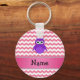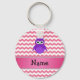 Personalized name purple owl pink chevrons keychain