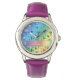 Watch is very cute--daughter likes the design on the face. Seems like good quality (we'll see how it holds up as she wears it). Very pretty design on watch face. I like that the hour and minute hands are marked, but difficult to see as type is very small (that might be my old eyes).
