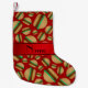 Perfect! Exactly what I ordered! I uploaded a picture of my blue chow, and the screen print was incredible. the back side of the stocking was the red and black checkered print. my puppy's name was also printed on the cuff of the stocking. PERFECT! Highly recommend this product! My puppy's name was screen printed onto the cuff of the stocking, the font was perfect!
