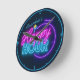 Personalized NAME Retro Faux Neon Happy Hour Bar Round Clock