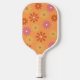 Pickleball paddle in a pretty daisy flower power hippie style pattern in colors of oranges, golden yellow, and pink with the name in colors of Oranges and yellow. Colors of the name or change it to a monogram, can be changed, just ungroup them and choose from the color pallet. To make more changes go to Personalize this template. On the bottom you’ll see “Want to customize this design even further? Click on the EDIT using Design tool. From there you can change some of the fonts & some colors, move things around or delete what you need. Makes a great gift for your coach, team or best pickleball buddy!