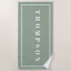 An elegant personalized name sage green beach towel. Customize the elegant script typography with your text. Ideal gift for an anniversary, wedding gift, bridal shower or honeymoon gift.