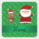 Create your own custom Personalized just add name,monogram, or initials or saying on your cute cartoon santa with red suit, white beard, green mittens and hat with pompom, a cute reindeer with red and green scarf and santa hat with a green candy canes pattern background and green stripe. Cute santa gift ideas for kids and girls and boys. Cute christmas santa gift ideas. If you hit the customize it button you can change the color and type of font.