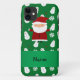 Cute christmas santa gift ideas. Create your own custom Personalized just add name,monogram, or initials or saying on your cute cartoon santa with red suit, white beard, green mittens and hat with pompom, with a green snowman, snowflakes, holly pattern background and green stripe. Cute santa gift ideas for kids and girls and boys. If you hit the customize it button you can change the color and type of font.