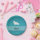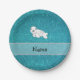 Personalized name seal turquoise glitter paper plates