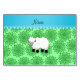 Cute sheep gift ideas. Create your own custom Personalized just add name,monogram, or initials or saying on your cute cartoon sheep with green flowers pattern background and blue heart stripe. Cute sheep gift ideas for kids. Ideal for holidays. If you hit the customize it button you can change the color and type of fon