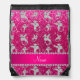 Personalized name silver dragons pink glitter drawstring bag