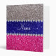 Modern, trendy, girly and chic faux neon hot pink glitter and silver pattern background blue glitter stripe (faux glitter, not real glitter) with faux hearts dots diamonds personalized with your name gifts or monogram gifts or your initials. Girly glitter gift ideas.