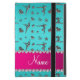 Modern, girly, chic and trendy Custom name turquoise silver (not real silver) gymnastics pattern with gymnast silhouettes stars, hearts and ribbon bows background and with pretty pink diamonds (faux not real diamonds) with sparkly hearts and dots stripe personalized with just add your name gifts or monogram gifts or your initials for a unique gift. Gymnastics gift ideas for women and girls. Ideal for gymnasts.
