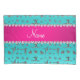 Modern, girly, chic and trendy Custom name turquoise silver (not real silver) gymnastics pattern with gymnast silhouettes stars, hearts and ribbon bows background and with pretty pink diamonds (faux not real diamonds) with sparkly hearts and dots stripe personalized with just add your name gifts or monogram gifts or your initials for a unique gift. Gymnastics gift ideas for women and girls. Ideal for gymnasts.