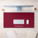 Personalized name desk mat with your name in a simple white typeface on a burgundy red background. Simple minimalist modern typography. Perfect for home or office workplace.