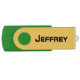 Personalized Name, Simple Green and Gold USB Flash Drive