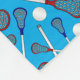 Modern and trendy sports lacrosse pattern with red and blue lacrosse sticks and a white rubber ball with sky blue background and with blue black stripe personalized with just add your name gifts or monogram gifts or your initials for a unique gift. Sports gift ideas for men and boys and girls. Ideal for birthdays.