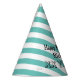 Personalized name striped Birthday party hats with elastic string.
