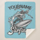 Personalized NAME Surfer Big Wave Skeleton Surfing Sherpa Blanket