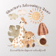 Transform your little one's nursery into a whimsical mixed theme wonderland of boho, woodland and jungle animals with this charming animal-themed wall decal. Featuring adorable illustrations in a muted boho, watercolor palette, this decal is perfect for creating a cozy and magical atmosphere that your child will love. The customizable text feature allows you to add your child's name or any other text of your choice both above and below the graphic, making this decal a truly unique and personal addition to your nursery decor.