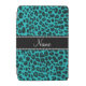 Girly and modern personalized custom name turquoise/teal/aqua leopard spots pattern (animal print) with a black diamonds stripe (not real diamonds) personalized with your name gifts or monogram gifts or your initials. Pretty leopard print gift ideas