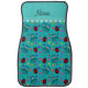 Personalized name turquoise owls flowers ladybugs car floor mat