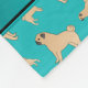 Modern and trendy Pug dogs pattern with a brown and black Pug dog and stripe personalized with your name gifts or monogram gifts or your initials. Cute Pug dog gift ideas for dog lovers. If you hit the customize it button you can change the color and type of font and you can also add your own pictures.