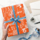 Word Cloud Typography in Orange and white - wrapping paper than can be personalized with a name or word.