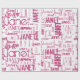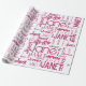 Typography / word cloud wrapping paper In pink that can be personalized with a name or word. Create a truly one of a present with this gift wrap.