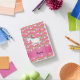 Create your own custom Personalized with a name,monogram, or initials or saying cute cartoon unicorn with a fun pink rainbows pattern background and pink stripe. Cute unicorn gift ideas for kids.
