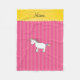 Personalized name unicorn pink stripes fleece blanket