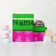 Create your own custom Personalized with just add your name (family name),monogram, greeting or initials or saying cute cartoon white unicorn with with pink christmas trees Christmas pattern background and green black stripe. Cute unicorn Christmas gift ideas.
