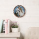 Personalized Name Wedding Photo Rustic Dark Wood Large Clock