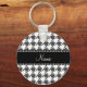 Personalized name white houndstooth pattern keychain