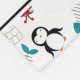 Create your own Personalized with a name, initials, monogram or saying cute black and white penguins, red squid, green fish bones and white igloos background with a stripe. Cute penguin gift ideas for penguin lovers.